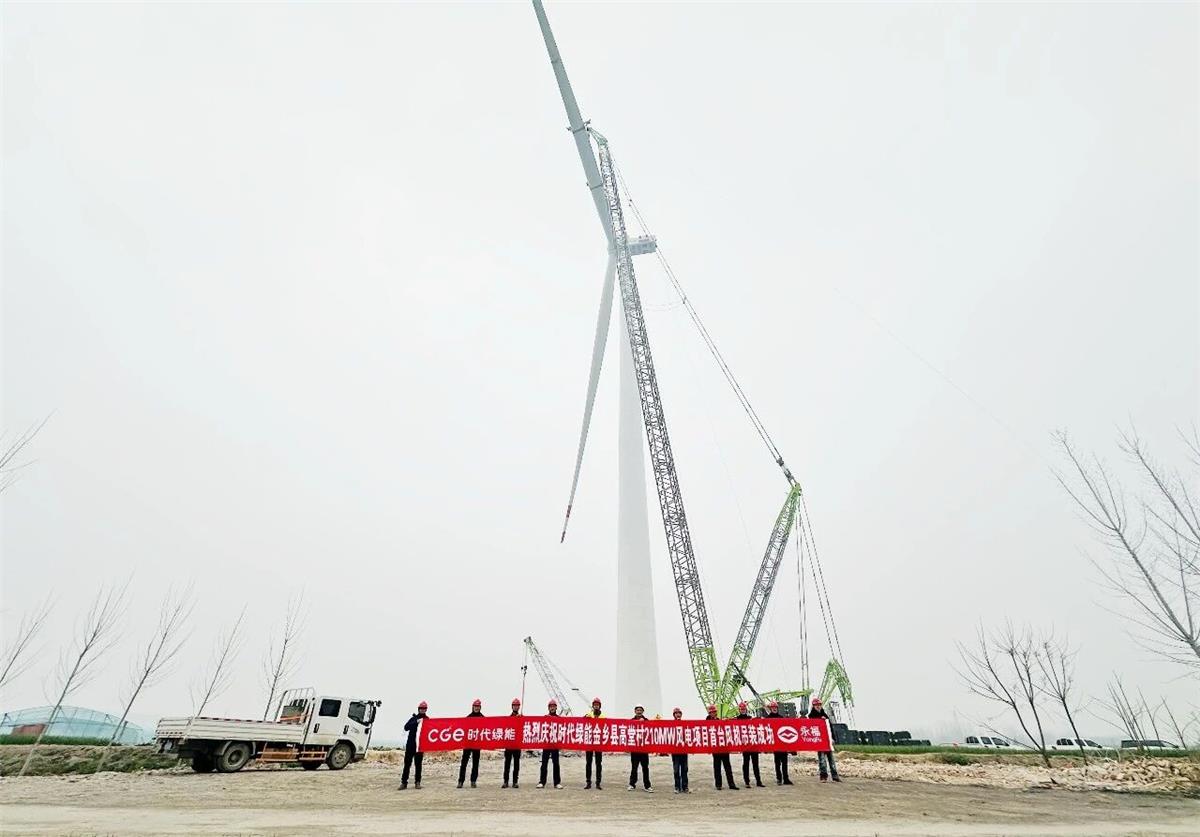 3月14日,由best365官方网站承建的时代绿能金乡县高堂村210MW陆上风电EPC总承包项目首台风电机顺利完成吊装。这一关键节点的达成,标志着项目向着全容量并网目标迈出了坚实一步。